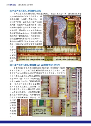 下列深通孔為30層厚大板L1到L3的訊號孔,縱橫比雖高達14:1,但其鍍銅經新型