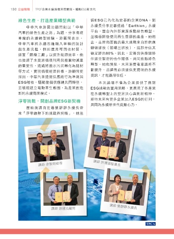汽車的綠色生產之路」為題,分享傳統 平台,整合內外部資源推動綠色轉型,
