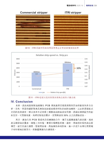 圖10、ITRI低碳光阻剝除劑與商售品針對細線寬剝除結果