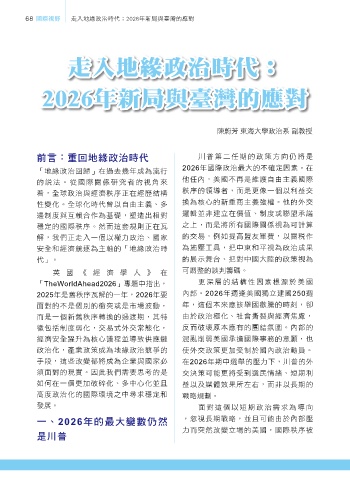68 國際視野 走入地緣政治時代:2026年新局與臺灣的應對